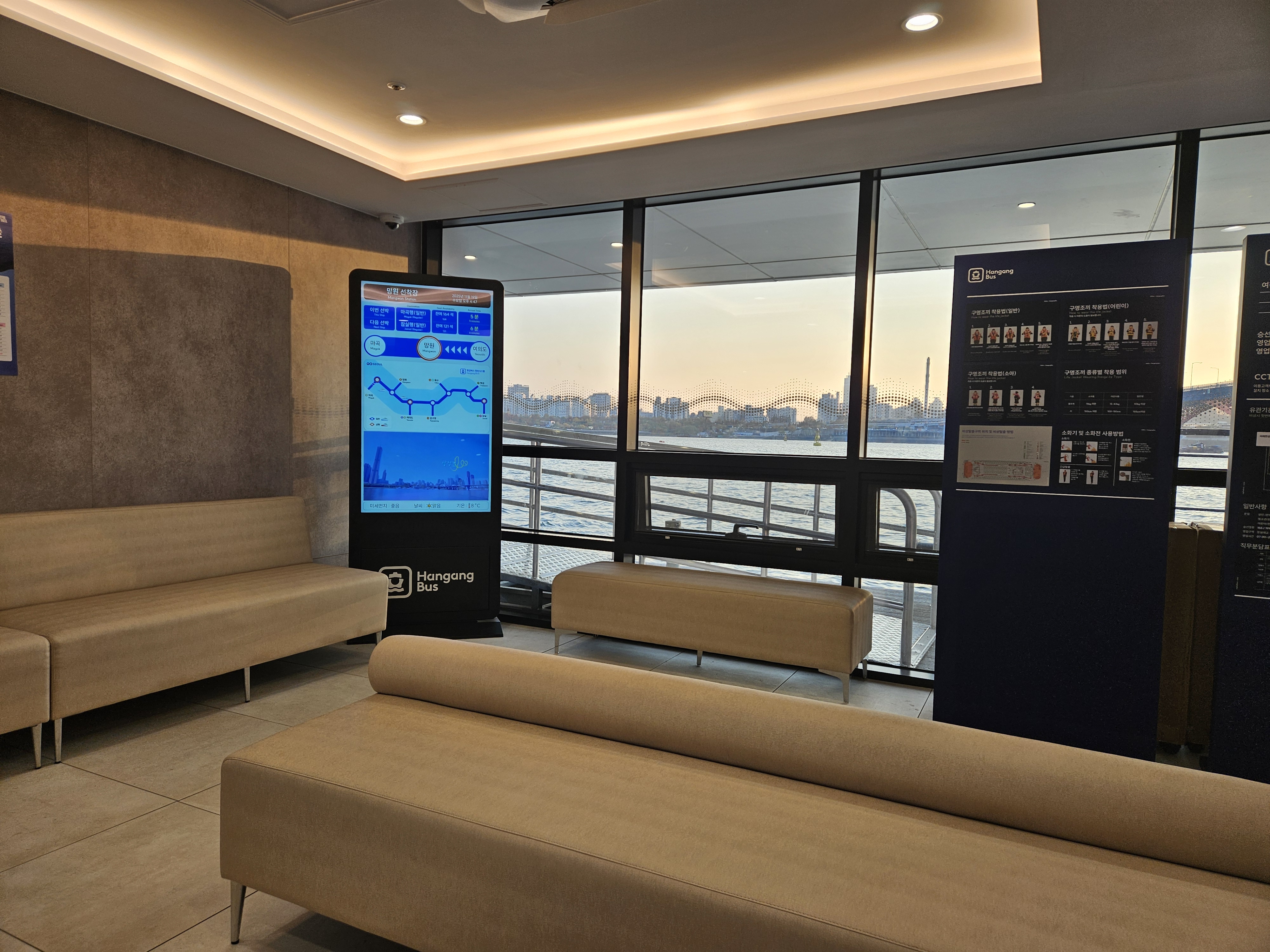 위에 보이는 사진은 선착장 건물 내부에 들어와서 티머니를 찍고 개찰구를 통과하면 보이는 좌측에 마련된 작은 대기공간이다.